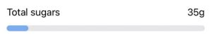 FDA defines Total Sugars as the sum of natural and added sugars. No daily limit is set for natural sugars and therefore for total sugars since no specific health risk is identified. That’s why total sugars do not contribute to the product score and have no thresholds. The Total Sugars bar is purely informational and reflects how much total sugars is in a serving. Below is an example of how Total Sugars bar may look like for a product. The grey part represents the whole serving, and the blue part shows how much of that serving is total sugars: